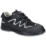 Extra light safety trainer made with water resistant leather upper, steel toe, anti-penetration steel midsole and ANTISTATIC dual density PU outsole